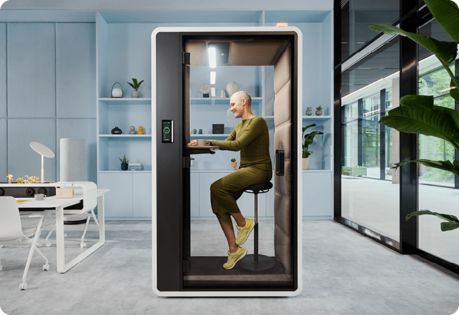 Te permite dedicar mucho más tiempo a reuniones y conversaciones en línea. ¡El trabajo individual prolongado, las videoconferencias y las llamadas en línea son ahora mucho mejores! hushFree.S es una cabina telefónica de oficina, el lugar perfecto para trabajar solo que requiere concentración y silencio. Trabaja mejor y de forma más eficiente, como y cuando quieras.