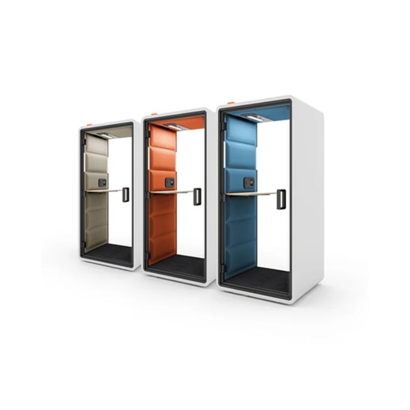 Todas las cabinas acústicas hushFree están diseñadas para integrarse en el interior de cualquier espacio de oficina y satisfacer las necesidades de cada empleado. El impactante diseño de los paneles acústicos internos, las mesas y el resto del mobiliario permite personalizar la cabina para adaptarla al estilo de cualquier negocio. Puede personalizar la cabina según sus necesidades y preferencias.