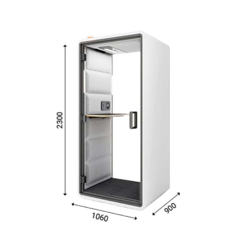 La cabina acústica hushFree.XS es ​​una solución que ocupa un espacio mínimo y ofrece el mejor rendimiento acústico y de cabina. Diseñada para llamadas telefónicas rápidas y videoconferencias breves. Diseñada para equipos que simplemente necesitan una cabina acústica para sus reuniones. La cabina está equipada con una mesa ergonómica e iluminación lateral LED adicional para el rostro del usuario. La cabina incluye de serie el módulo hushAssistant, un controlador circular de iluminación y ventilación de 4 pulgadas con pantalla táctil de alta resolución. Parte de la funcionalidad de hushAssistant es la gestión y visualización de la disponibilidad de las cabinas y la información de reserva.